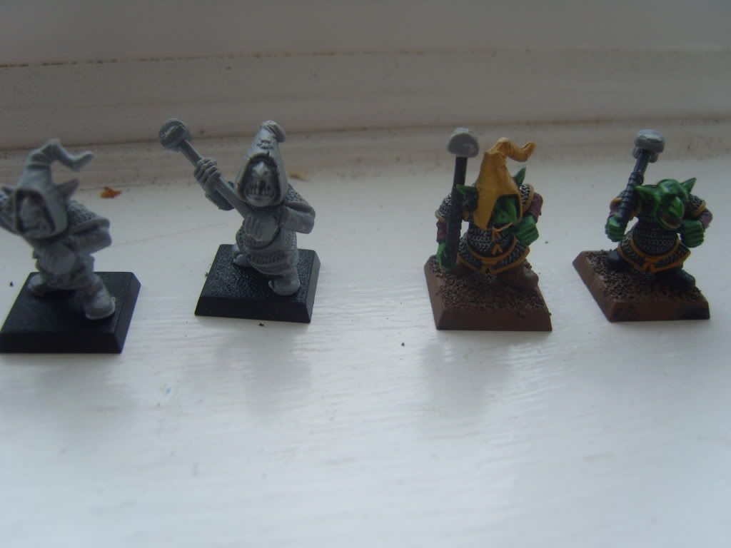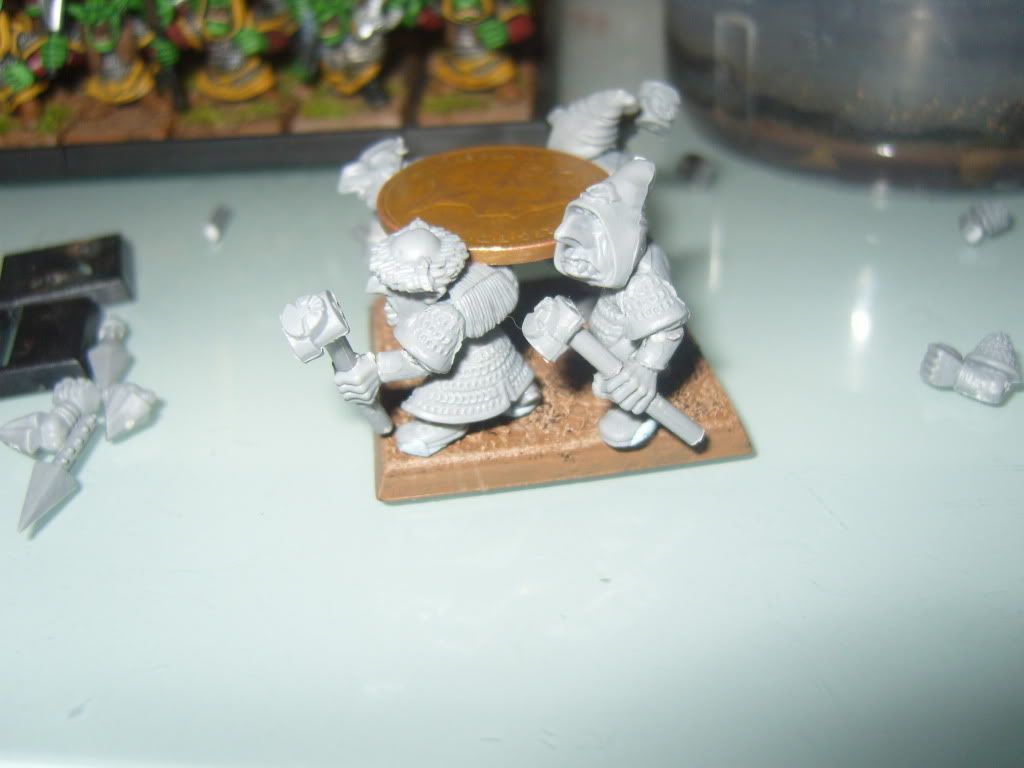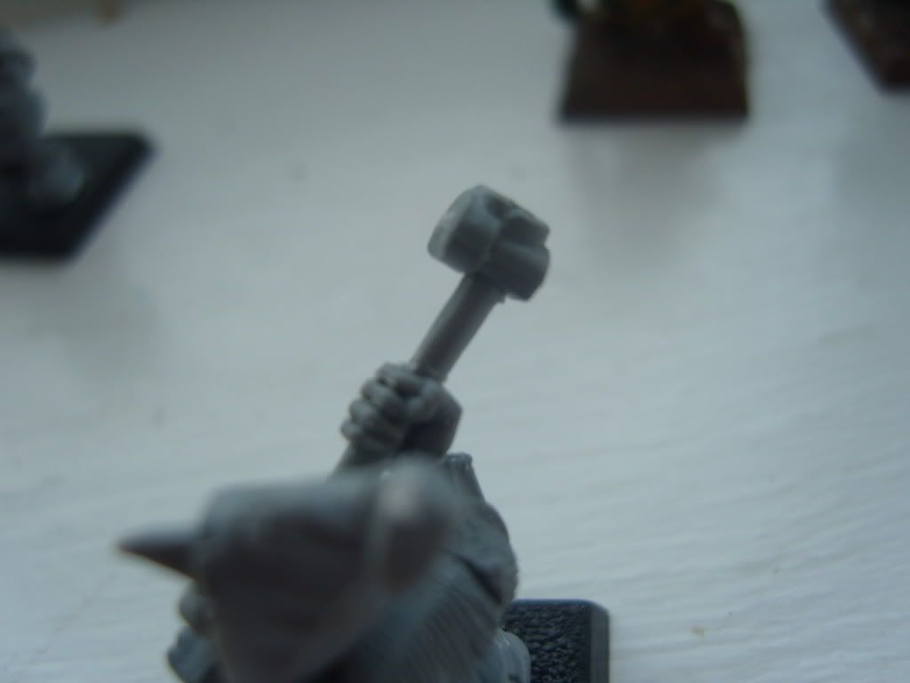 I might have found a solution, theres a slight scale issue but it could be the perfect smaller hammer head. I'm not sure what piece it is, it's a arrow fletch from one of the crossbow sets with the arrows cut off, basically it is the metalic pouch with a little dwarf symbol on it. Looks just like a hammer head.