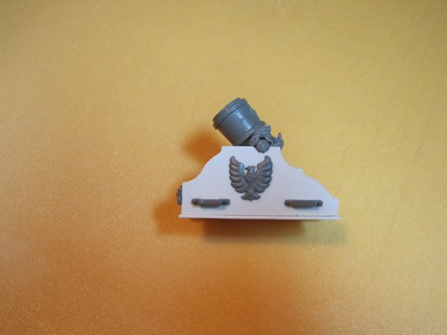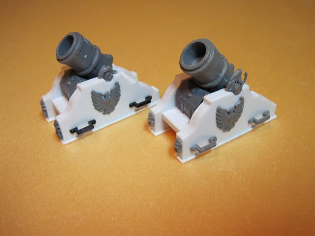 Very nice, I like it! I'm doing the same, but I'm using a different style of chassis. I think I had looked at a similar reference to what you did. I considered using it, but I felt the metal chassis was inappropriate for Empire cannons. I went with a wood style that has a look like the current chassis. I actually built mine using the same technique. I laminated three sheets of 1mm thick plastic card to make mine. I didn't use scissors, but an X-acto knife, then after the glue was dry I trimed them and sanded them. Then I used some squadron white putty to fill in any remaining gaps and sanded them down again once it was dry. I used a dremel to cut the half moon shaped indents for the Mortar pegs to fit into. I'll have to get some pictures taken of my work soon