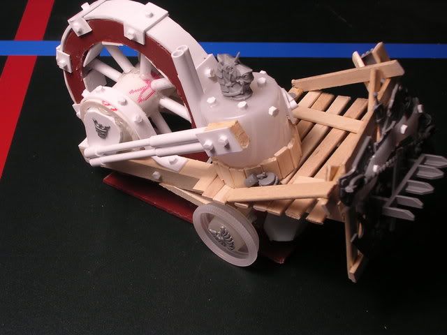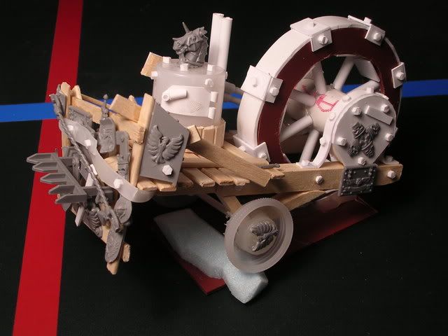 I havent decided if i want the wheel in the back pushing, or in the front grinding into troops. IDEAS?
