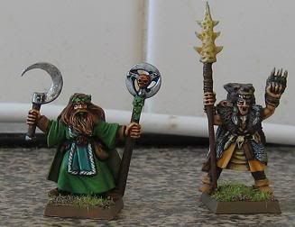 Some Wizards on foot, a plastic one from the game Talisman, that's based on the metal 4th Ed Jade Wizard, and a 4th Ed Metal Amber Wizard