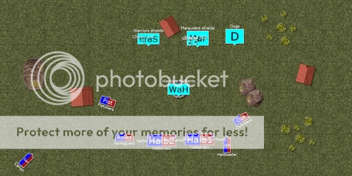 Halberds 1 fails their charge (8 to reach) in the rear of the marauders (they turn to face the pistoliers, I am not sure why...).