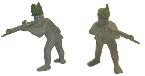 At the moment it looks like what I have to do is file off the poofy bits (where applicable), fill any necessary spaces with green stuff, add little tails and finally make shakos.