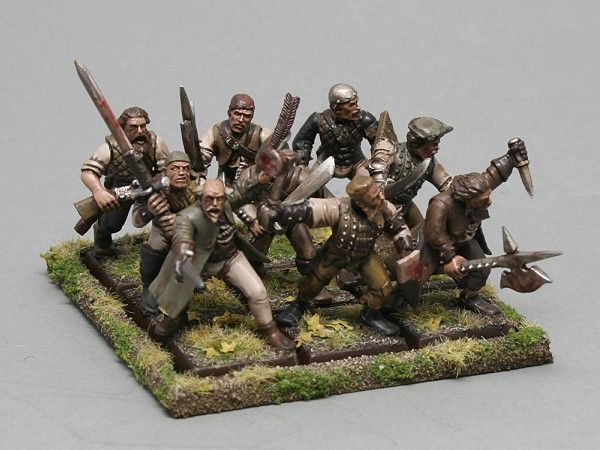 Enough chatter, here's the first unit, a detachment of militia. These were a test to check out some colour combinations and to see if I would be happy with the end result of the simple technique. The figures were bought already assembled from ebay, I just cleaned them up and got on with the painting.