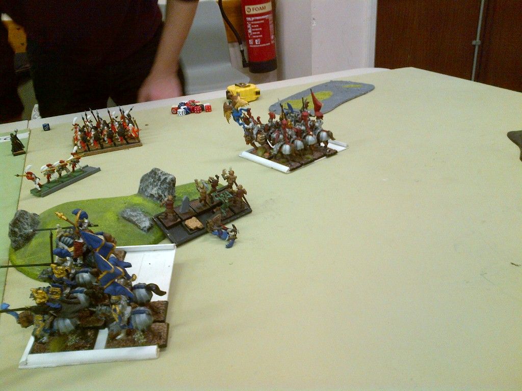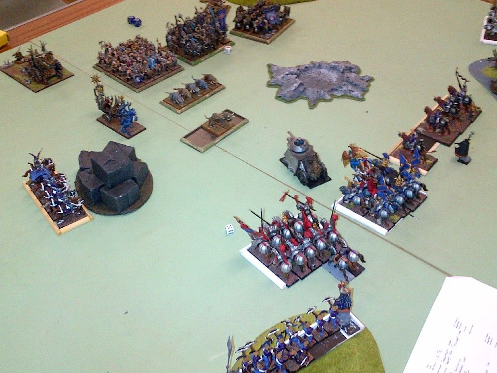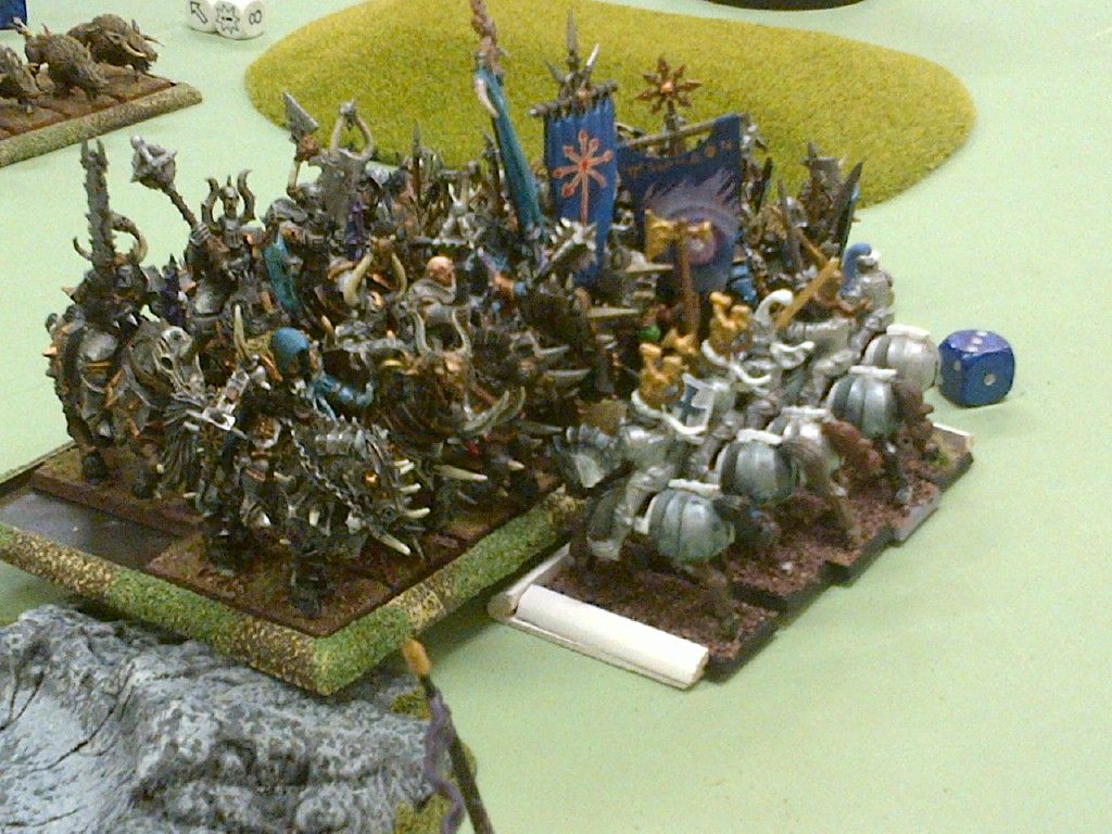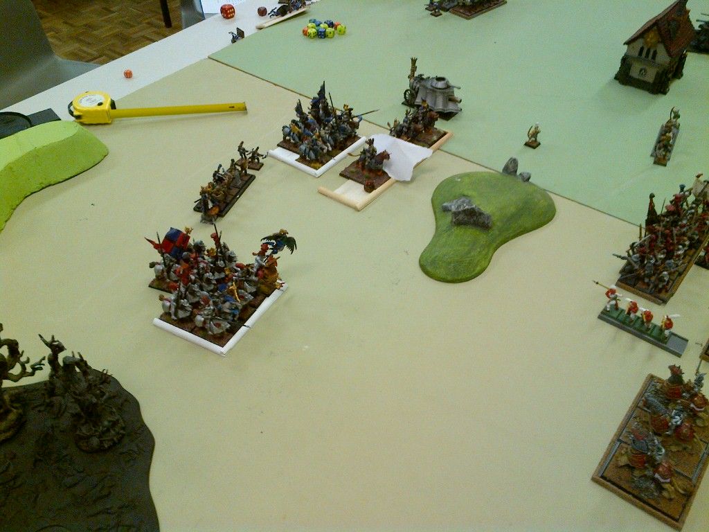 pete charged his chaos warriors, and more surprisingly his knights into my great weapon knights... i was happy the chaos warriors were now moving away from the center of the battle field.