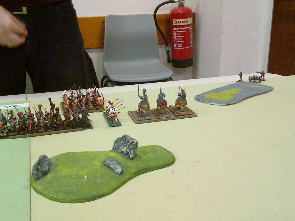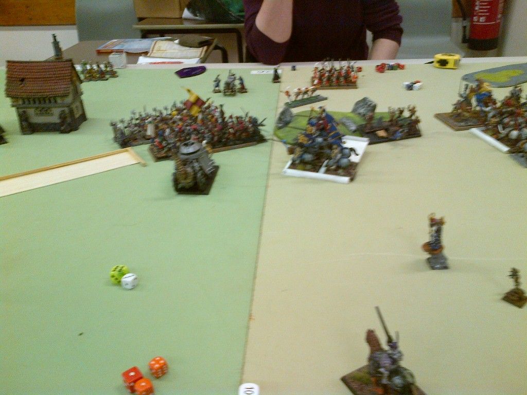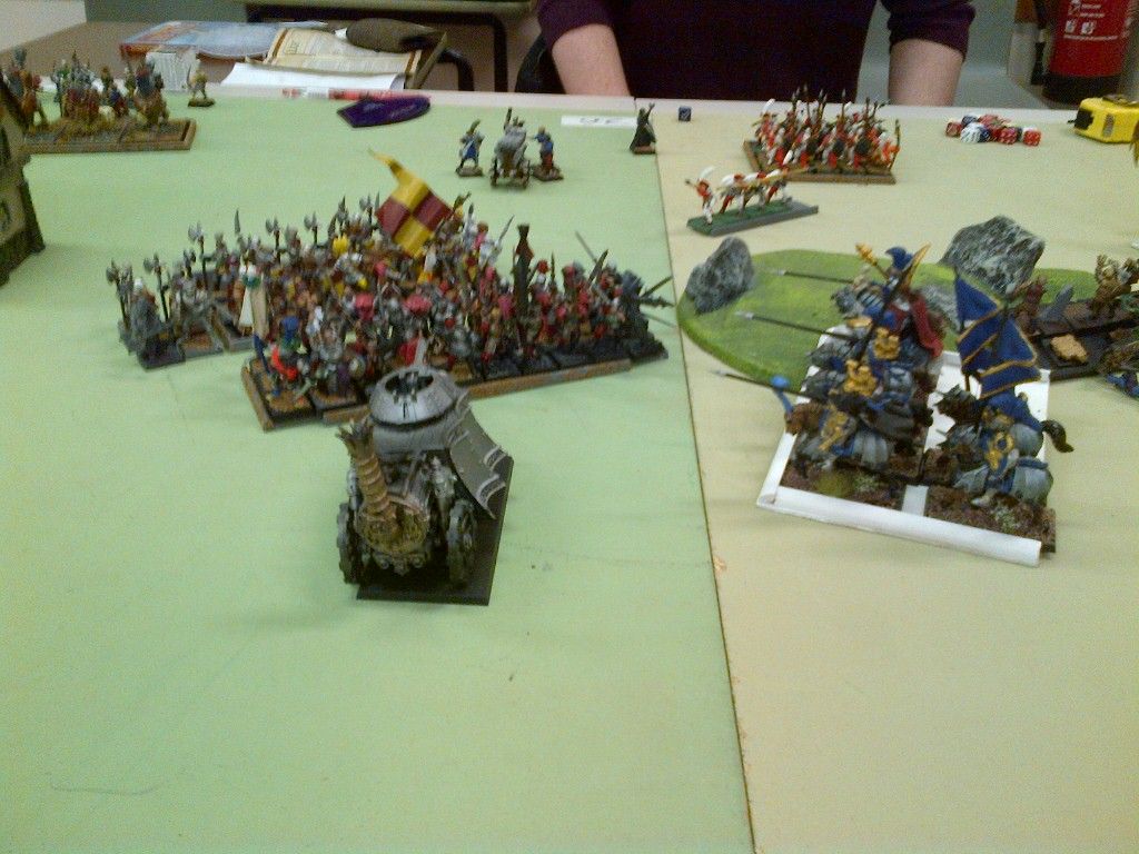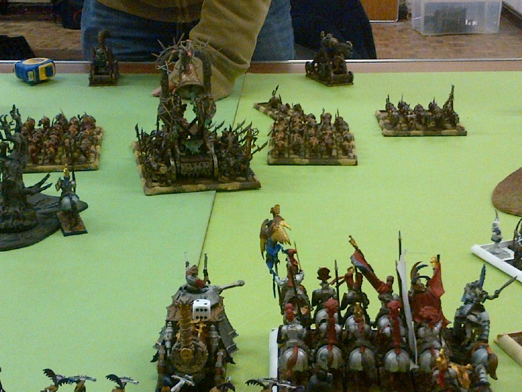 pete charged his chaos warriors, and more surprisingly his knights into my great weapon knights... i was happy the chaos warriors were now moving away from the center of the battle field.