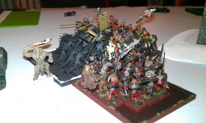 Hello all, with the new Lizard book just out, my brother and a friend were eager to test the new stuff out, and I was just as eager to play against it! So we arranged to have a big 4000pt battle on Monday with them sharing command of a 4000pt army of Lizards (though they selected 2000pts each, they ended up mostly controlling the half of the battlefield they sat infront of. I borrowed my brother's steam tank and brought 4000pts of Hochland's finest men to take them on!