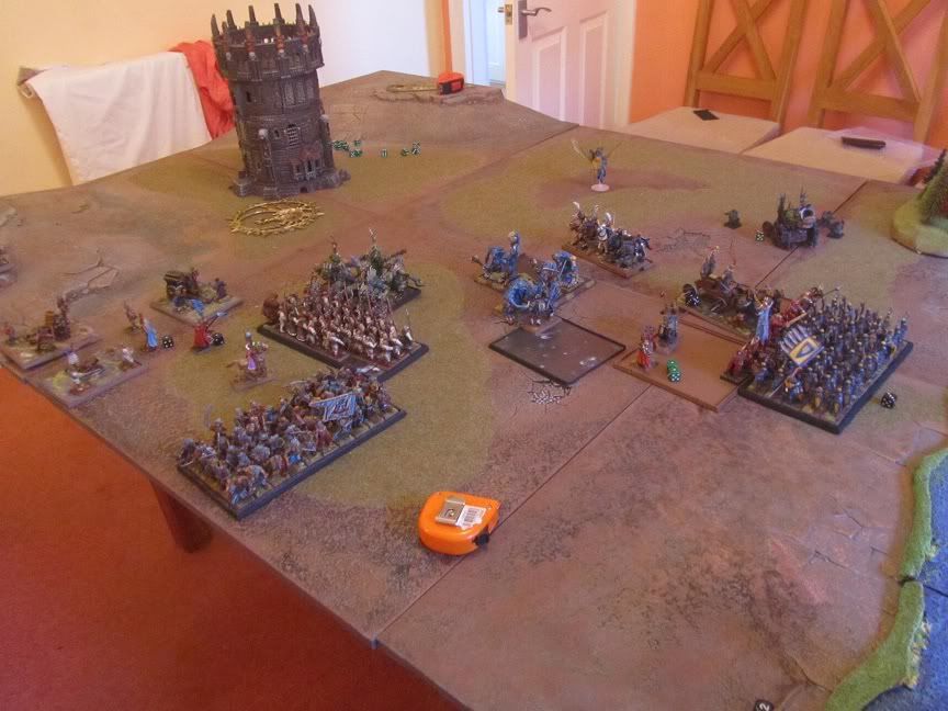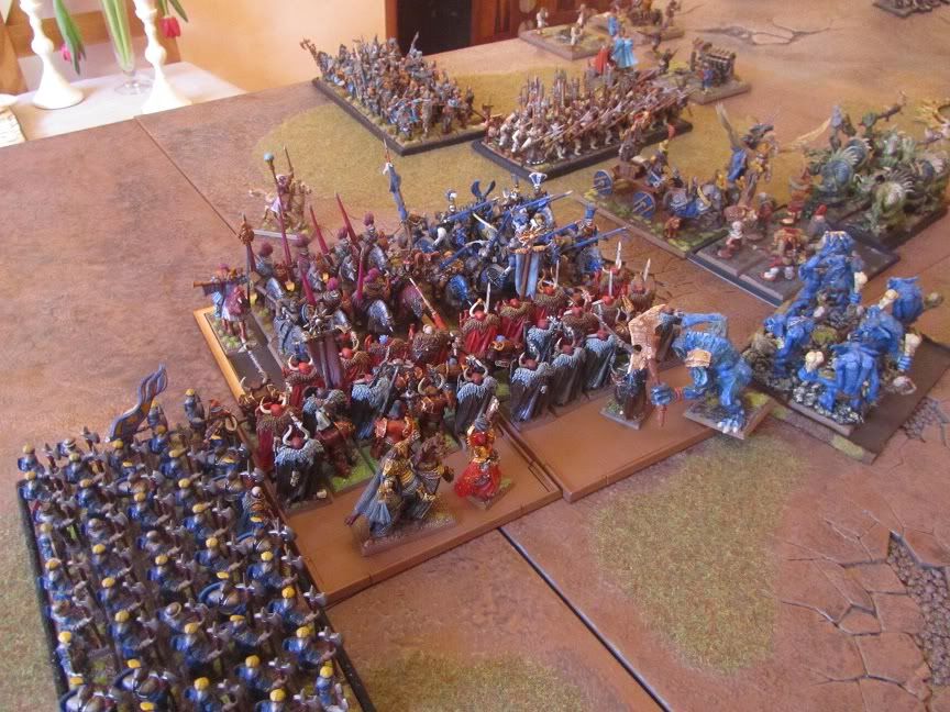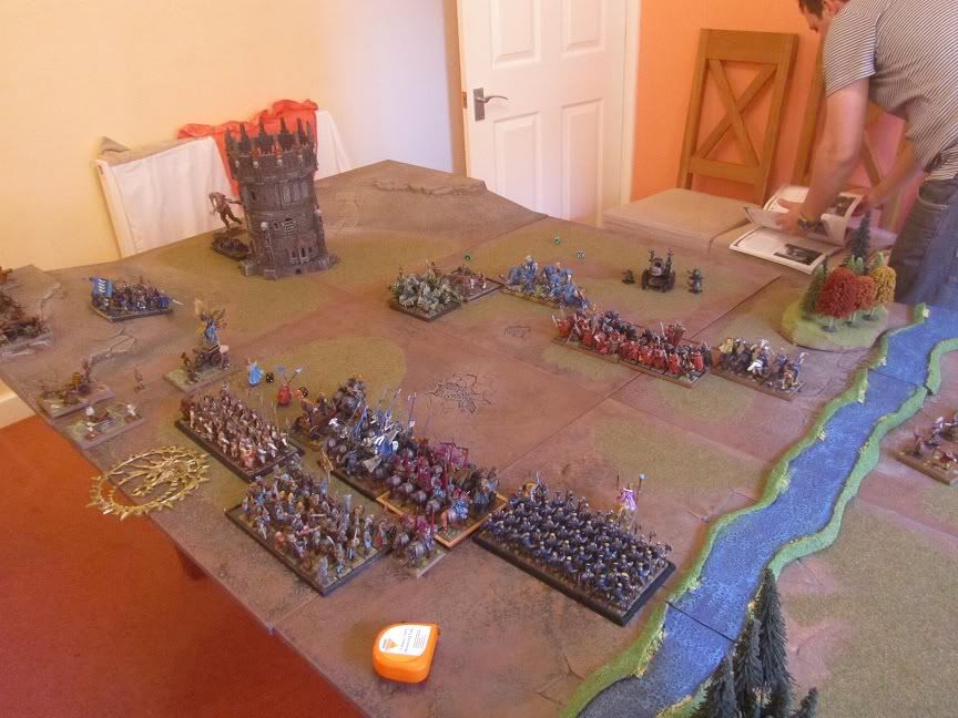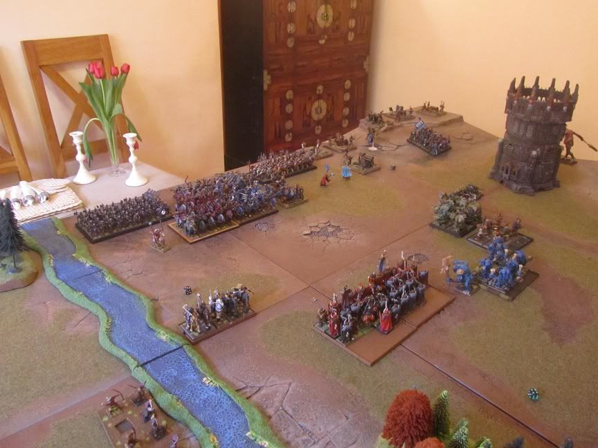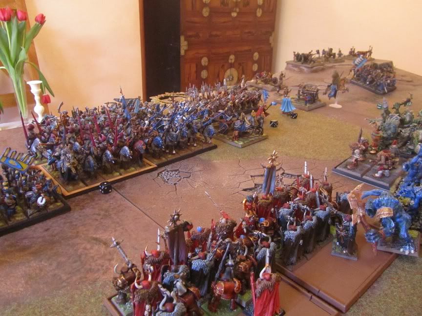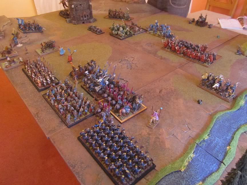 40 Halberds in the left centre also engaged 5 trolls, (he lost 4 wounds to artillery on his one unit of 6 trolls).
